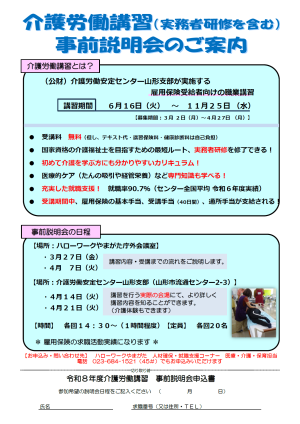 ◆会場:介護労働安定センター山形支部(山形市流通センター2-3)◆