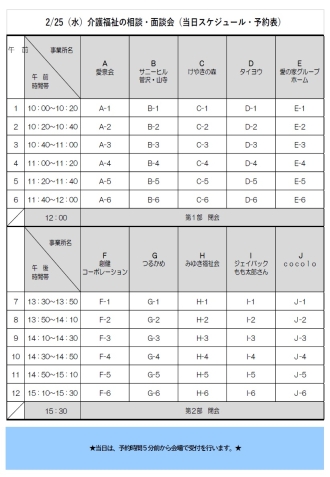 午前の部(5事業所)・午後の部(5事業所)に分けて開催いたします。