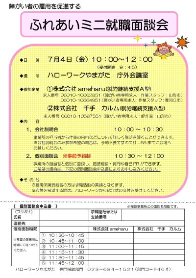 - 障がい者を対象とした「ふれあいミニ就職面談会」を開催します!
