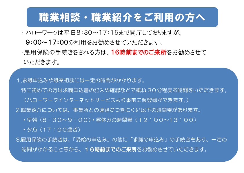 ご利用時間 8:30~17:15 (終日閉庁:土、日、祝日、年末年始)