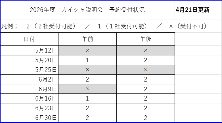 また、既開催事業所は、次の開催まで2ヶ月以上の間隔が必要です。