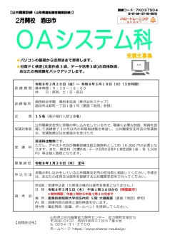 | ★OA基礎科【訓練期間:3ヶ月】 ※募集期間終了 基本的なパソコンスキルの習得とビジネスマナーやコミュニケーションスキルの向上など、就活力・社会人力アップを目指し再就職に結びつけます。 |