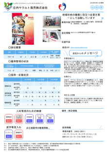 | 企業PR | 地域社会の健康に役立つ企業を 第一として活動しています。 |