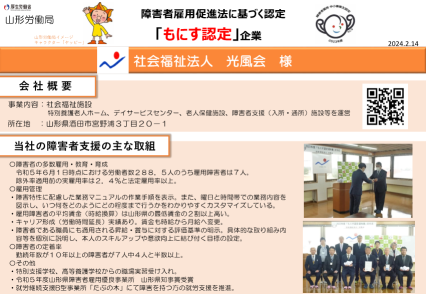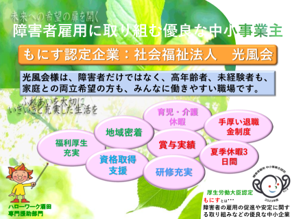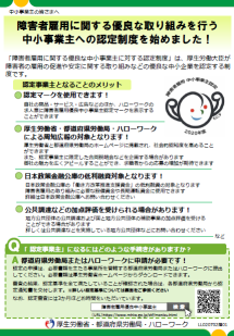 厚生労働大臣認定 障害者雇用促進法に基づく「もにす認定」企業 ~障害者雇用に取り組む優良な中小事業主~