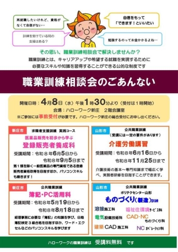 ご参加には事前受付が必要です。ハローワーク新庄の受付にお申し出ください。※雇用保険受給者は求職活動実績となります