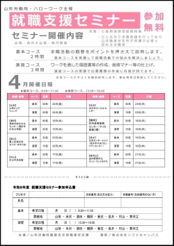 就職活動に必要なスキルや応募書類の書き方、面接の受け方などを学ぶことができます。演習コースを受講する前に「基本コース」の受講をおすすめします。応募書類の添削を希望する方は当日ご持参ください。