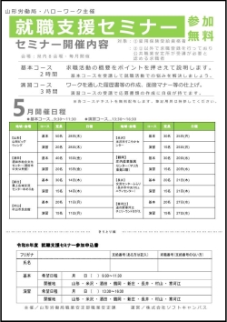 【基本コース】 就職活動での心構えと応募書類作成・面接の受け方等の基本を学びます。 【演習コース】 自己理解・求職活動のノウハウを演習を通して学びます。 |