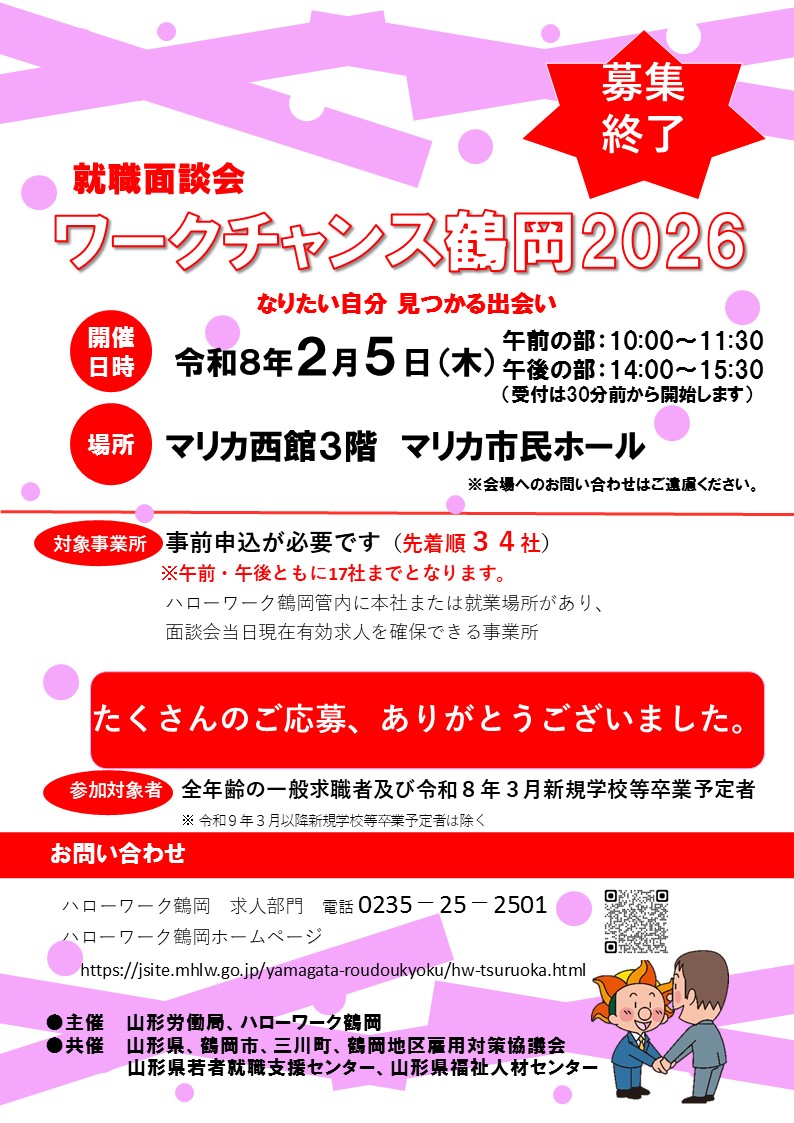 大規模面談会「ワークチャンス鶴岡2026」へご応募いただきありがとうございました。
