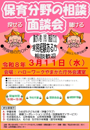 - 【保育分野】「保育分野の相談面談会」を開催します!