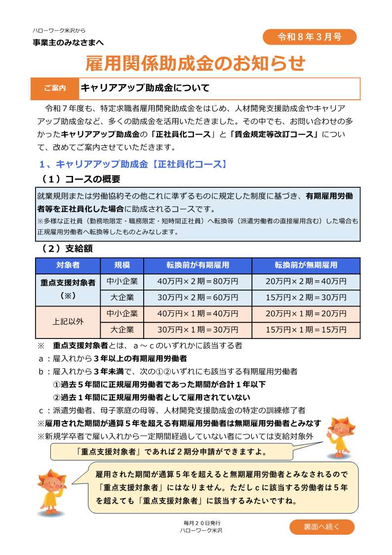 月刊誌「雇用関係助成金のお知らせ」(米沢所発行)について