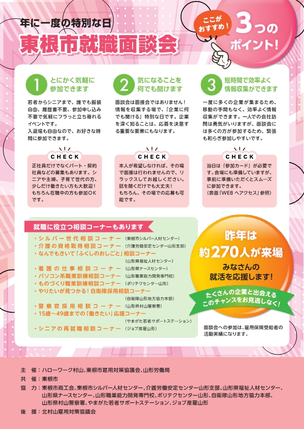 【「令和7年度東根市就職面談会」へ参加を希望される企業のみなさまへ】