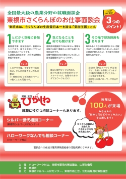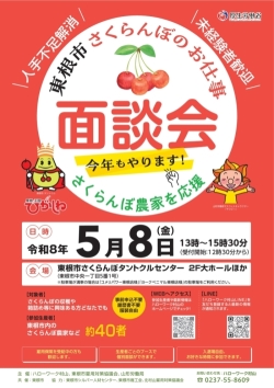 ◆内 容◆ さくらんぼ生産者と求職者が、生産者ごとの個別ブースで直接面談します