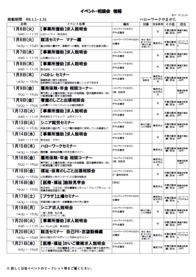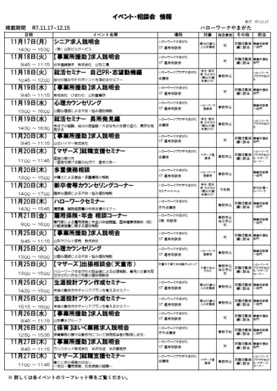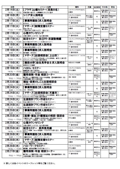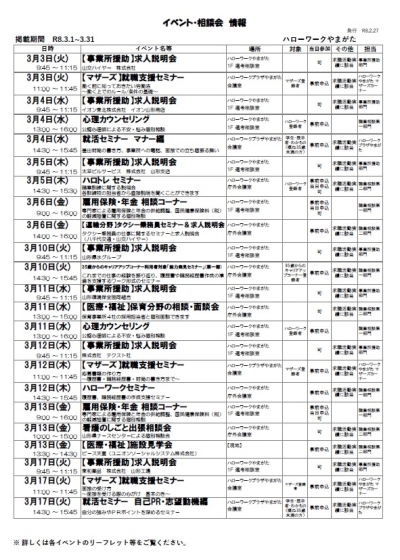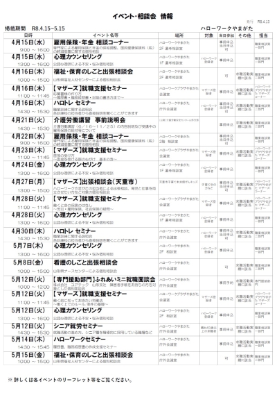 ☆ ハローワークセミナー:ハローワークやまがた総合受付にご確認ください。