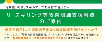 リ・スキリング等教育訓練支援融資は、スキルアップ等を目指す方々を支援する融資制度です。