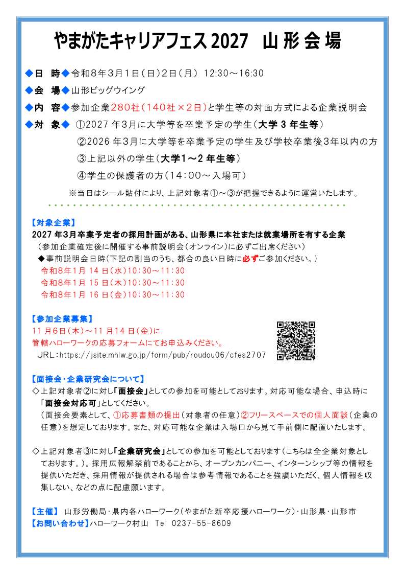 「やまがたキャリアフェス2027 山形会場」の開催について
