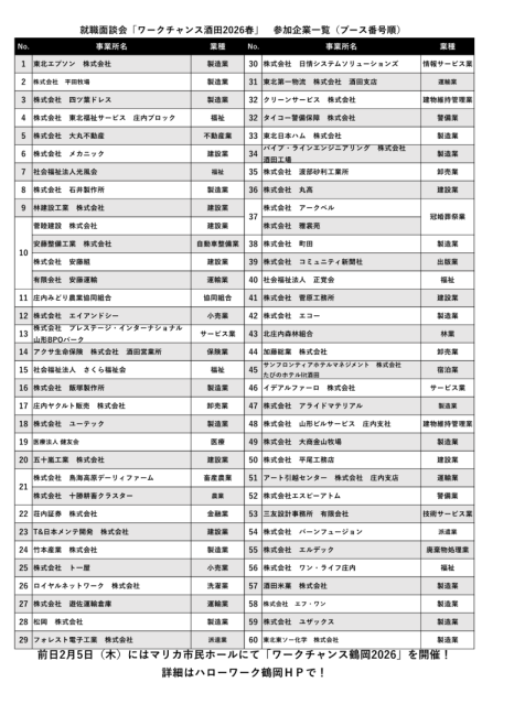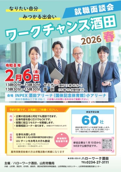- 就職面談会「ワークチャンス酒田2026春」を開催します