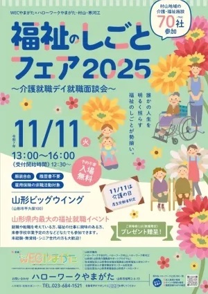 ハローワークやまがた・村山・寒河江の3所管内に就業場所がある介護・福祉サービス事業所 約70社が参加予定。