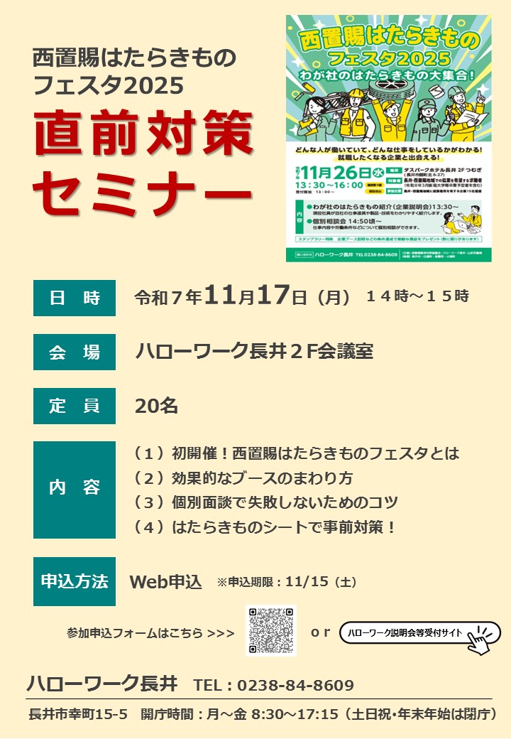 参加対象者:長井・西置賜地域での就業を希望する求職者