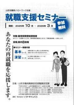 就職活動の進め方や応募書類の書き方、面接に不安がある方は、ぜひ就職支援セミナーにご参加ください!参加希望の方は、ハローワーク酒田へお申し込みください。