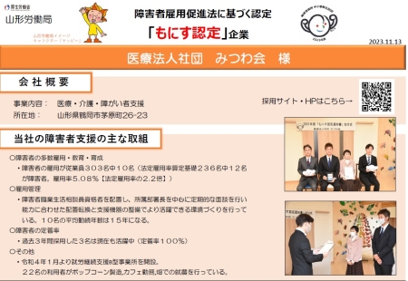 この認定制度を通じて、障害者雇用のロールモデルとして認知されることで、地域における障害者雇用の取り組みの一層の推進が期待されます。