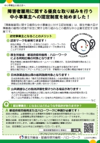障害者の雇用の促進および雇用の安定に関する取り組みなどが優良な中小企業を厚生労働大臣が認定する制度です。