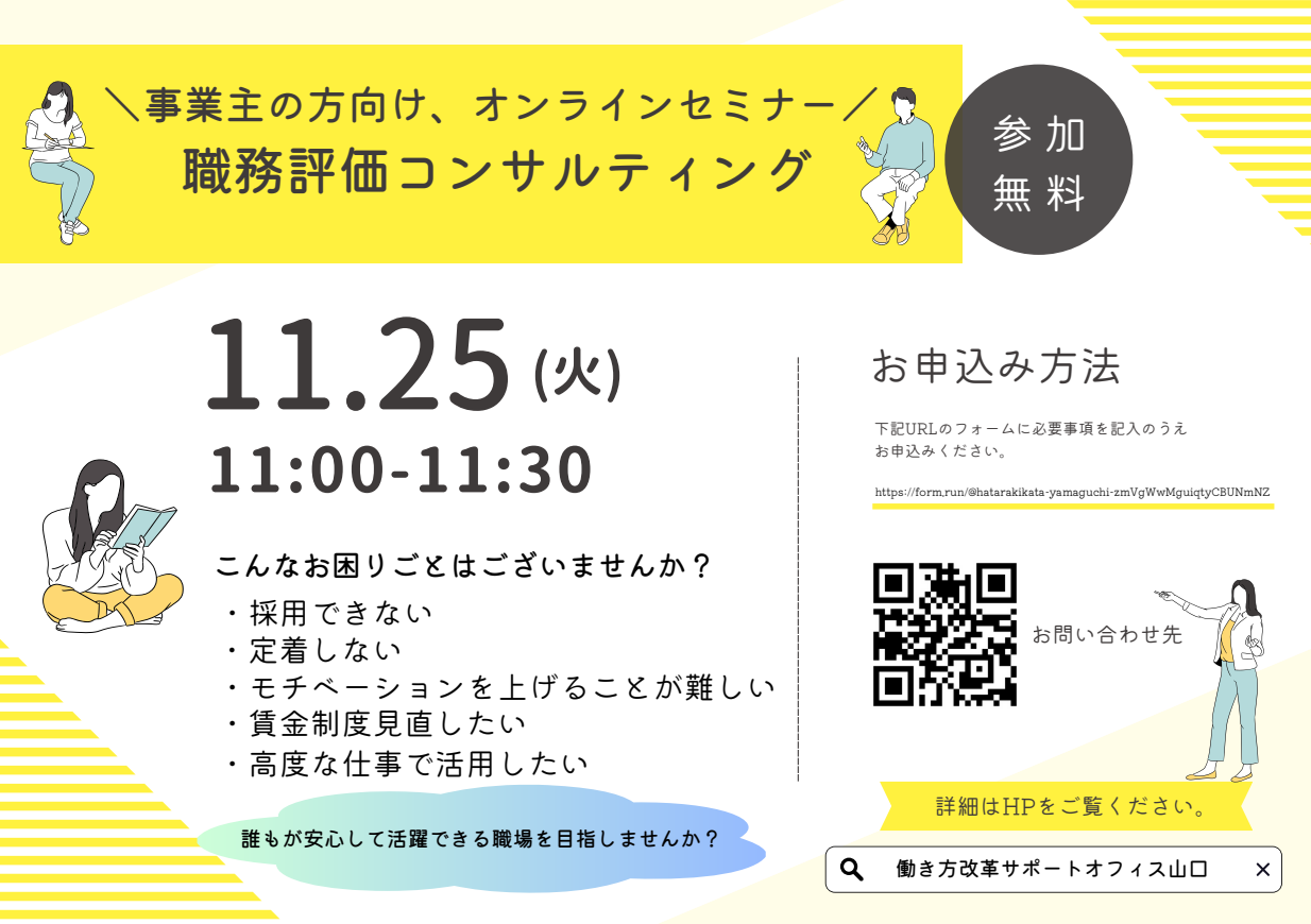 - \事業主の方向け、オンラインセミナー/ 職務評価コンサルティング(厚生労働省委託事業)