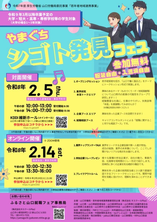 - 令和8年2月やまぐちシゴト発見フェス《就職ガイダンス》を開催します