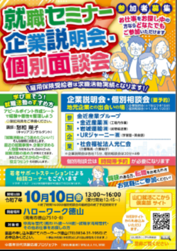令和7年度から「中高年世代活躍応援プロジェクト山口県協議会」に名称を改め、就職氷河期世代を含む就職に支援が必要な中高年世代に対象を拡大した上で、引き続き各界一体となって、安定就労をはじめ多様な社会参加の実現に向け、当該世代の活躍の場を拡げるための支援に取り組んでいます。