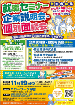 ➢ハローワーク宇部では、安定した就労経験が少ない中高年層の方を対象とした専門窓口を設置しています。