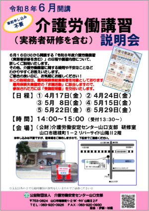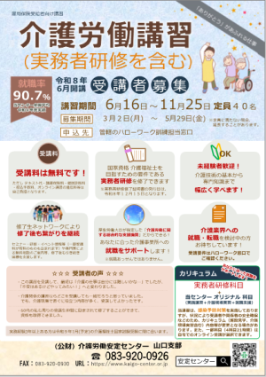 | 山口 | 介護労働安定センター山口支部 | 6月16日 11月25日 |