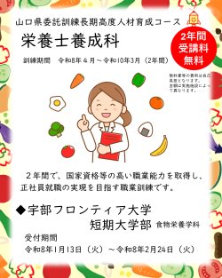 栄養士養成科(宇部) | 宇部フロンティア大学短期大学部 | 24ヶ月 R8年4月3日 |