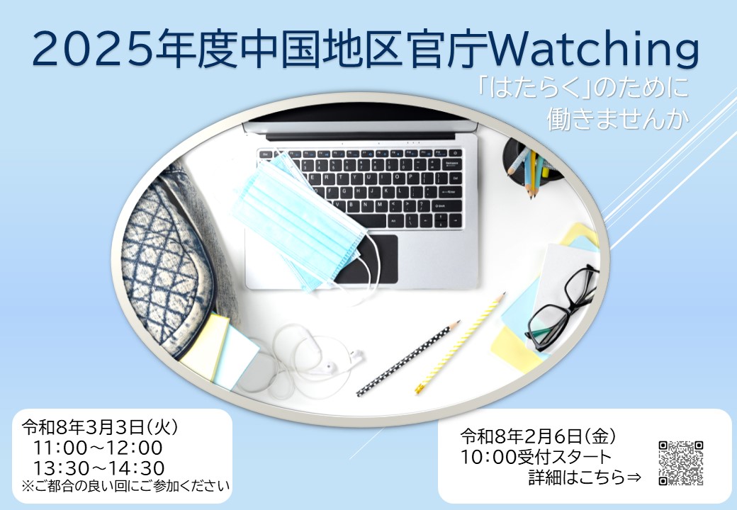 山口労働局では、2025年度中国地区官庁Watchingの事前予約を、以下のとおり受け付けます。
