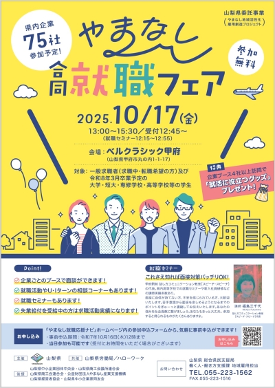 - 【山梨県主催】「やまなし合同就職フェア」を開催します!! (令和7年10月17日開催)