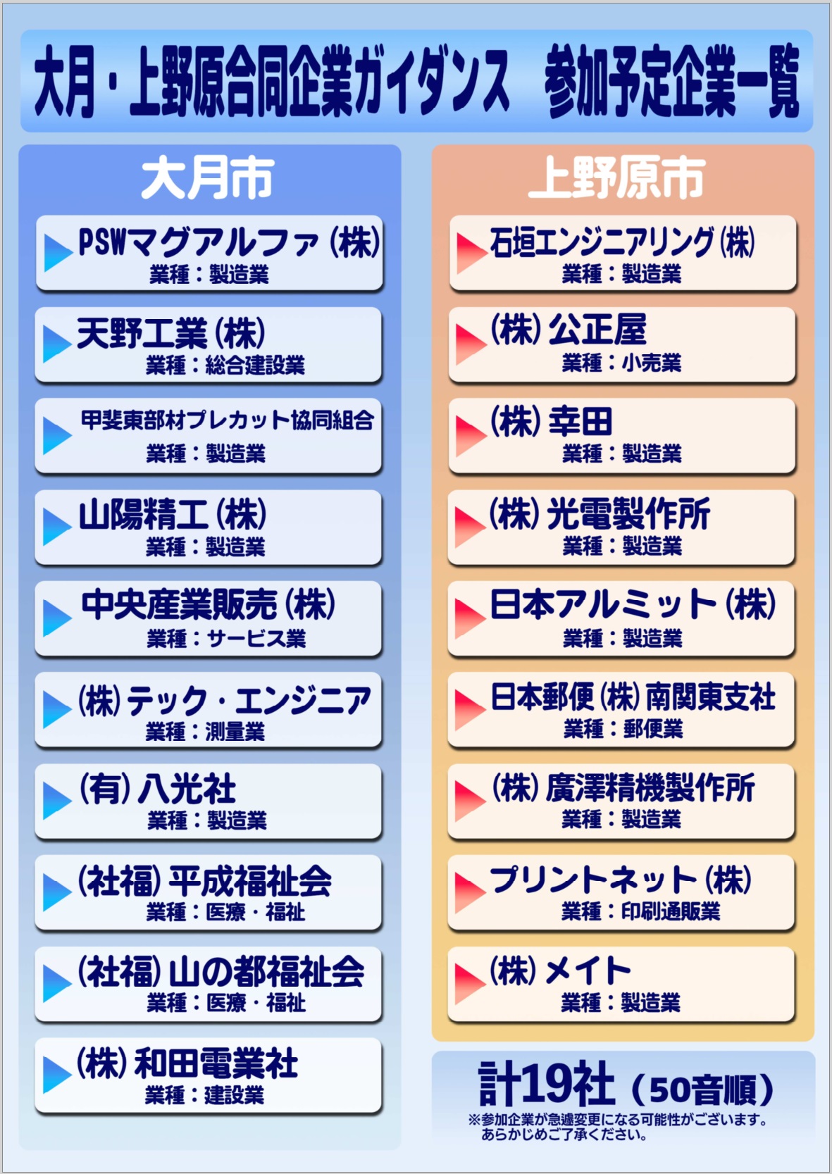- 2026年3月15日「大月・上野原合同企業ガイダンス」開催のご案内