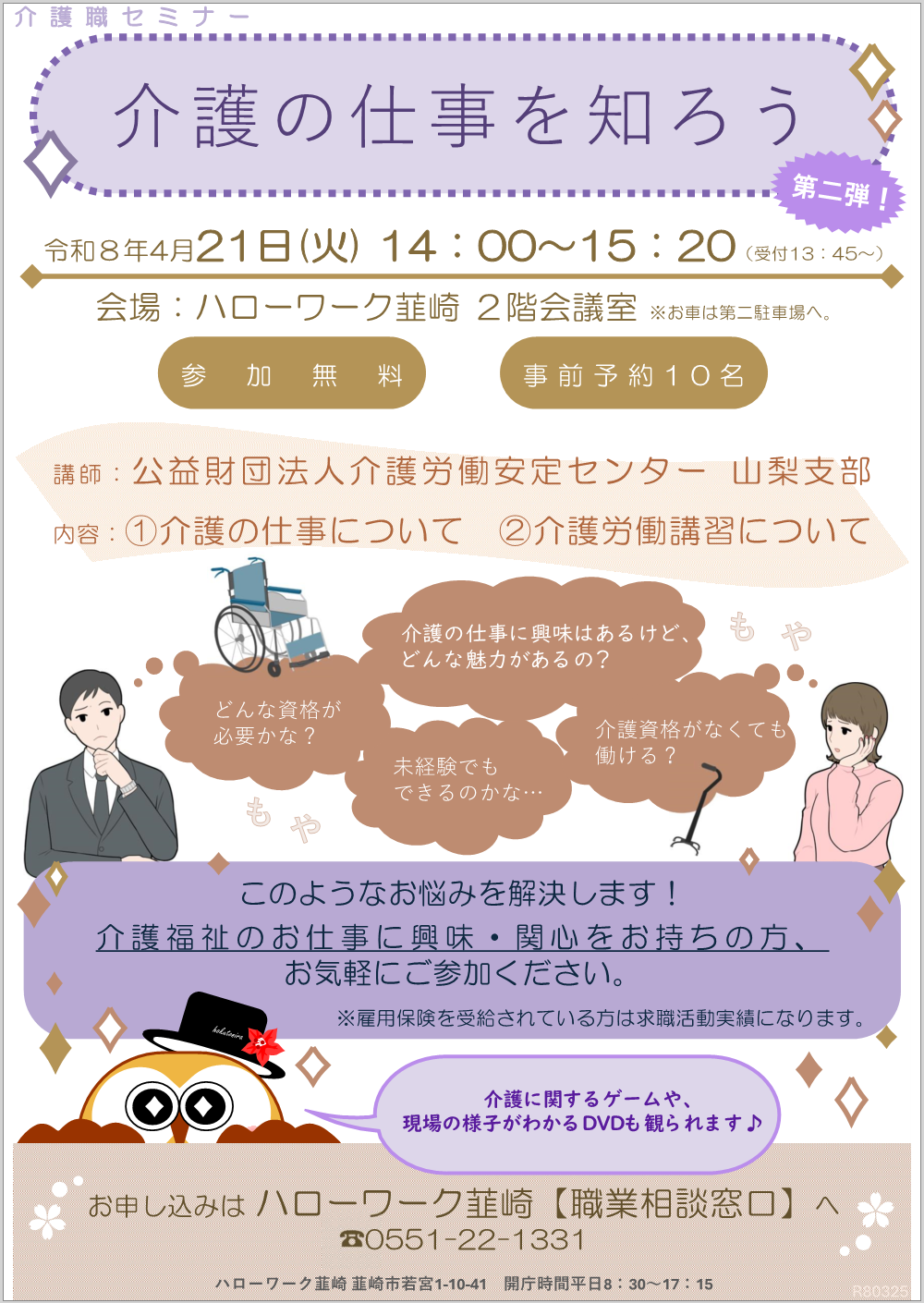 | 1) | 【4月21日開催】介護の仕事を知ろう |