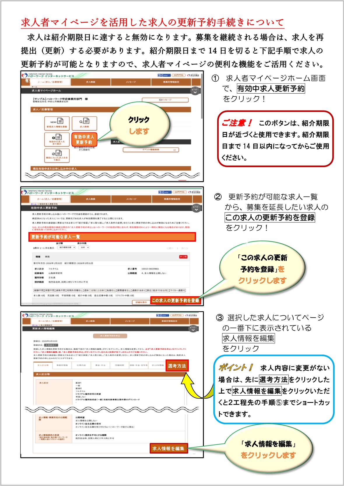 | ● | 求人者マイページからの求人更新案内 | |