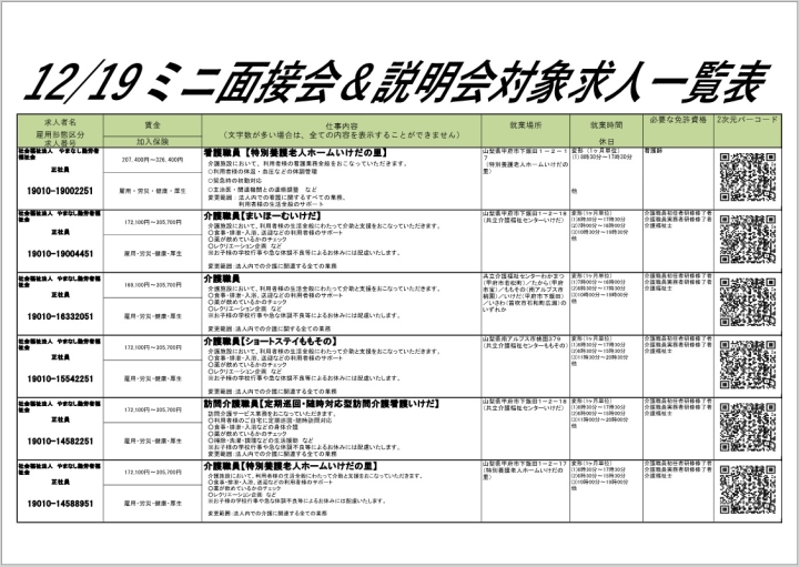 ミニ就職面接会(介護職員・看護師)【社会福祉法人やまなし勤労者福祉会】